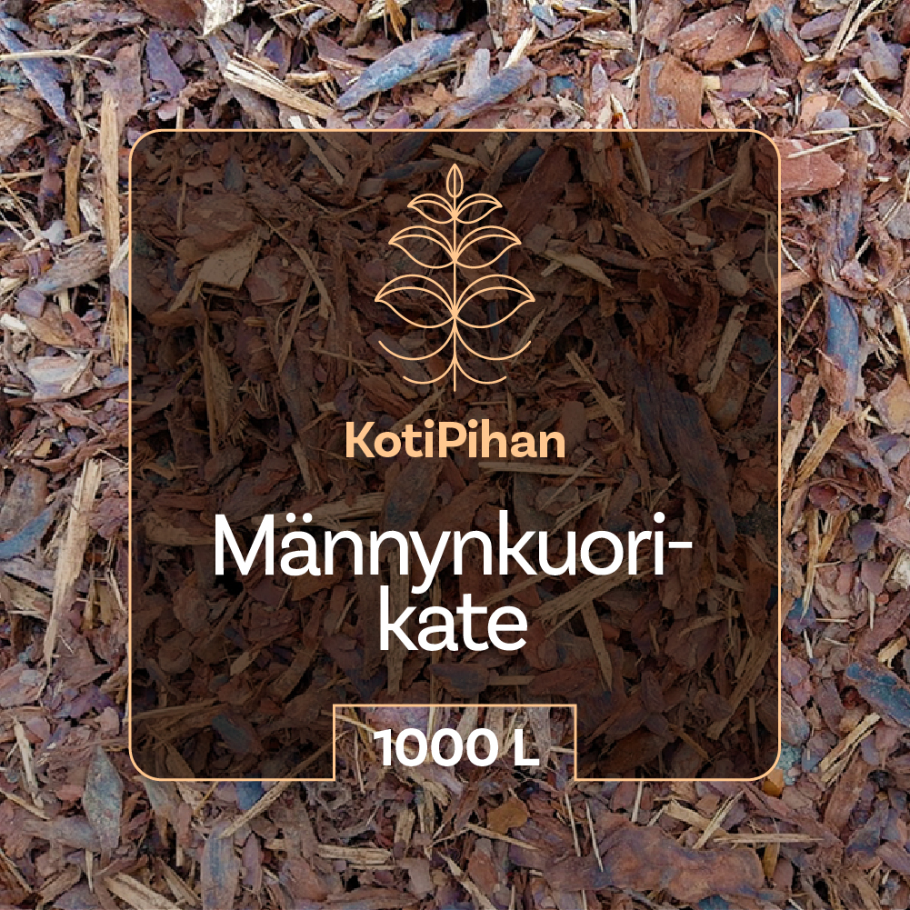Viime vuoden männynkuorikatetta edullisesti. Tuoretta kuorikatetta tummempaa ja painavampaa. Toimitetaan 1ooo litran suursäkissä.